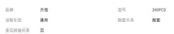 本网页所展示的有关【适用于福特丰田本田车身保险杠门板卡子/塑料卡扣240pcs盒装卡扣_ HVAC汽车_南宫天恒汽车配件有限公司】的信息/图片/参数等由全球零部件网的会员【南宫天恒汽车配件有限公司】提供,由全球零部件网会员【南宫天恒汽车配件有限公司】自行对信息/图片/参数等的真实性、准确性和合法性负责,本平台(本网站)仅提供展示服务,请谨慎交易,因交易而产生的法律关系及法律纠纷由您自行协商解决,本平台(本网站)对此不承担任何责任。您在本网页可以浏览【适用于福特丰田本田车身保险杠门板卡子/塑料卡扣240pcs盒装卡扣_ HVAC汽车_南宫天恒汽车配件有限公司】有关的信息/图片/价格等及提供【适用于福特丰田本田车身保险杠门板卡子/塑料卡扣240pcs盒装卡扣_ HVAC汽车_南宫天恒汽车配件有限公司】的商家公司简介、联系方式等信息。