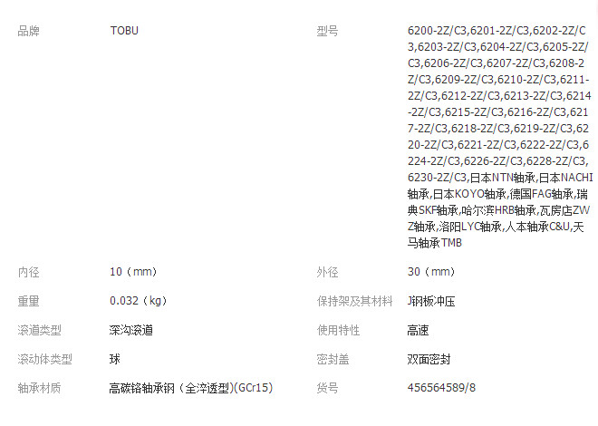 本网页所展示的有关【TOBU深沟球轴承6200系列电机轴承日本技术 德国工艺高精密 高转速_轴承_东莞市东武轴承有限公司】的信息/图片/参数等由全球零部件网的会员【东莞市东武轴承有限公司】提供,由全球零部件网会员【东莞市东武轴承有限公司】自行对信息/图片/参数等的真实性、准确性和合法性负责,本平台(本网站)仅提供展示服务,请谨慎交易,因交易而产生的法律关系及法律纠纷由您自行协商解决,本平台(本网站)对此不承担任何责任。您在本网页可以浏览【TOBU深沟球轴承6200系列电机轴承日本技术 德国工艺高精密 高转速_轴承_东莞市东武轴承有限公司】有关的信息/图片/价格等及提供【TOBU深沟球轴承6200系列电机轴承日本技术 德国工艺高精密 高转速_轴承_东莞市东武轴承有限公司】的商家公司简介、联系方式等信息。