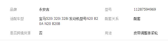本网页所展示的有关【涨紧轮 OE:11287594969 发动机型号:N20 B20A_涨紧轮_十堰市百懋科技发展有限公司】的信息/图片/参数等由全球零部件网的会员【十堰市百懋科技发展有限公司】提供,由全球零部件网会员【十堰市百懋科技发展有限公司】自行对信息/图片/参数等的真实性、准确性和合法性负责,本平台(本网站)仅提供展示服务,请谨慎交易,因交易而产生的法律关系及法律纠纷由您自行协商解决,本平台(本网站)对此不承担任何责任。您在本网页可以浏览【涨紧轮 OE:11287594969 发动机型号:N20 B20A_涨紧轮_十堰市百懋科技发展有限公司】有关的信息/图片/价格等及提供【涨紧轮 OE:11287594969 发动机型号:N20 B20A_涨紧轮_十堰市百懋科技发展有限公司】的商家公司简介、联系方式等信息。
