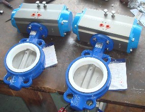 气动蝶阀双(单)作用气动活塞式执行器与蝶阀组成。连接形式分为对夹式和法兰式两种,其阀座采用橡胶、氟橡胶和不锈钢堆焊,从而很大程度的提高了其适用范围。具有结构简、体积小、重量轻等优点。气动活塞式执行器采用低摩擦材料,缸体内外表面经硬质阳极