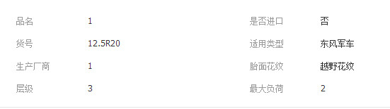 本网页所展示的有关【原装正品A级东风军车EQ2102N双星12.5R20轮胎越野花纹_轮胎_十堰市高科工贸有限公司】的信息/图片/参数等由全球零部件网的会员【十堰市高科工贸有限公司】提供,由全球零部件网会员【十堰市高科工贸有限公司】自行对信息/图片/参数等的真实性、准确性和合法性负责,本平台(本网站)仅提供展示服务,请谨慎交易,因交易而产生的法律关系及法律纠纷由您自行协商解决,本平台(本网站)对此不承担任何责任。您在本网页可以浏览【原装正品A级东风军车EQ2102N双星12.5R20轮胎越野花纹_轮胎_十堰市高科工贸有限公司】有关的信息/图片/价格等及提供【原装正品A级东风军车EQ2102N双星12.5R20轮胎越野花纹_轮胎_十堰市高科工贸有限公司】的商家公司简介、联系方式等信息。