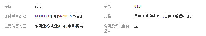 本网页所展示的有关【KOBELCO神钢SK200-8/210-8/250-8/260-8挖掘机消声器装载机消音器_消音器_赣州市鸿安汽车零部件有限公司】的信息/图片/参数等由全球零部件网的会员【赣州市鸿安汽车零部件有限公司】提供,由全球零部件网会员【赣州市鸿安汽车零部件有限公司】自行对信息/图片/参数等的真实性、准确性和合法性负责,本平台(本网站)仅提供展示服务,请谨慎交易,因交易而产生的法律关系及法律纠纷由您自行协商解决,本平台(本网站)对此不承担任何责任。您在本网页可以浏览【KOBELCO神钢SK200-8/210-8/250-8/260-8挖掘机消声器装载机消音器_消音器_赣州市鸿安汽车零部件有限公司】有关的信息/图片/价格等及提供【KOBELCO神钢SK200-8/210-8/250-8/260-8挖掘机消声器装载机消音器_消音器_赣州市鸿安汽车零部件有限公司】的商家公司简介、联系方式等信息。