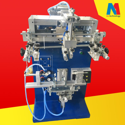 该曲面丝印机,全机采用原厂日本和台湾进口气动元件,运行速度快,品质稳定,套色准,行程400MM。采用无杆气缸驱动,印刷座吹气功能,可印刷外形较软的产品,圆、扁形的产品有专用的夹具。适合∮150MM左右的产品印刷,如化妆品,化工容器,食品包装及相关曲面产品的表面丝印。