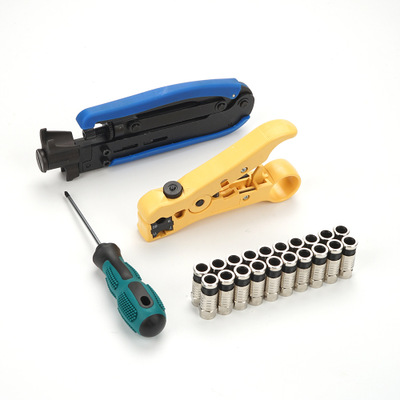 可制作RG6,RG11,-5、-7等各类挤压F头任意调节长度前端可调节卡子设计,全能挤压各类F头。适用于卫星英制挤压F头,有线电视挤压公制F头。-5 -7 -9 F头均可使用。想让你的F头接触线的地方牢固吗?想让你的F头密封防水吗?那就使用挤压式F头吧!也叫装配式F头,不仅美观牢固,还密封防水,电器性能好,减少信号损耗,同时装配时即省力又快捷。那使用挤压F头就要使用挤压钳的,否则装配不上的。新款无损挤压式F头钳,出口欧美的,不仅做F头方便快捷,而且精致耐用,是RG59,RG6,RG11,-5、-7挤压F头制作的专用工具。不受挤压头长短大小的限制,可以任意调节长度。甚至很大很粗的挤压头一样不在话下,前端有个可以掉转的卡子,因此可以说是全能挤压钳。
