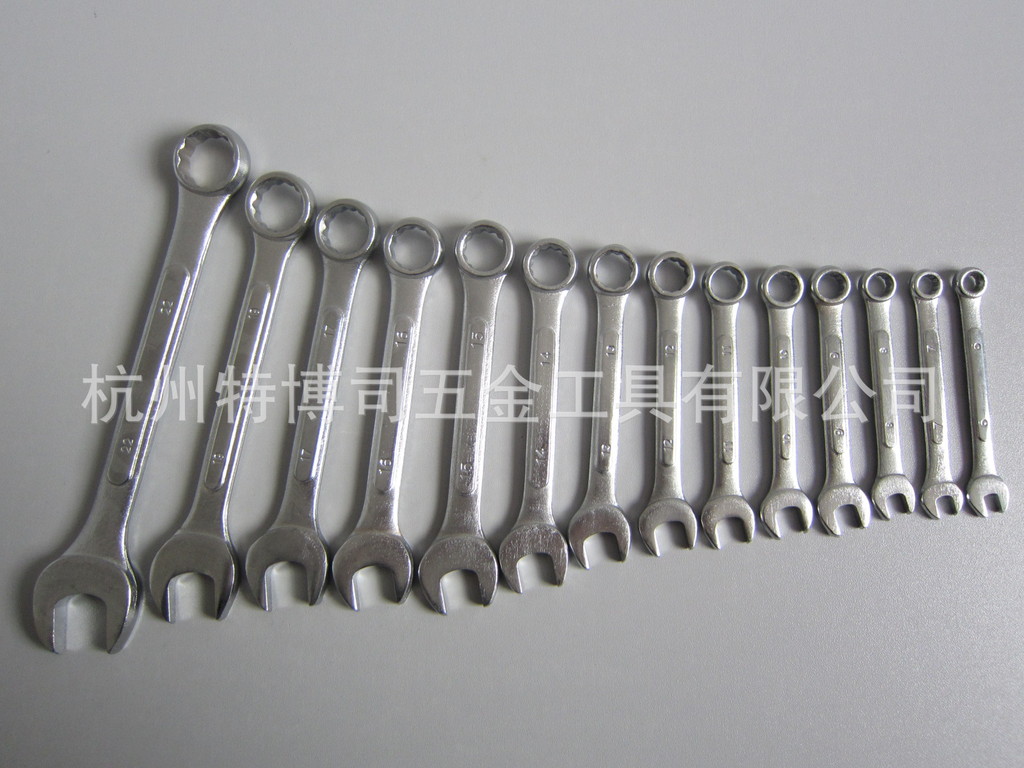本产品为梅花开口两用扳手,采用45#中碳钢经过高温过火,硬度达到42-46度.手握部分采用凸筋设计,经济实用,欢迎来电咨询……