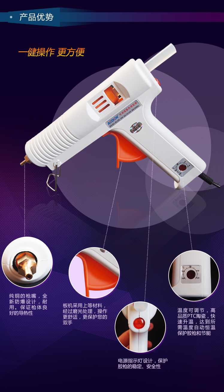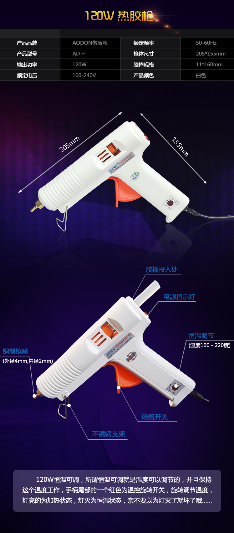 AODON傲盾AD-F胶枪 100W 120W可调恒温热熔胶枪 热胶枪