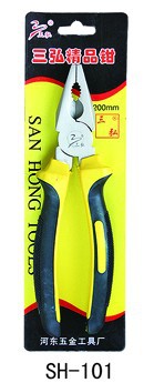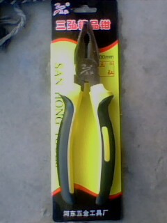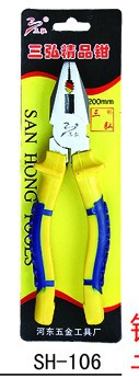 著名品牌三弘镍黑钢丝钳,总长200mm 材质55锰 适用范围.剪断铁丝 手柄. 刺猬手柄 包装 吸塑包装插卡