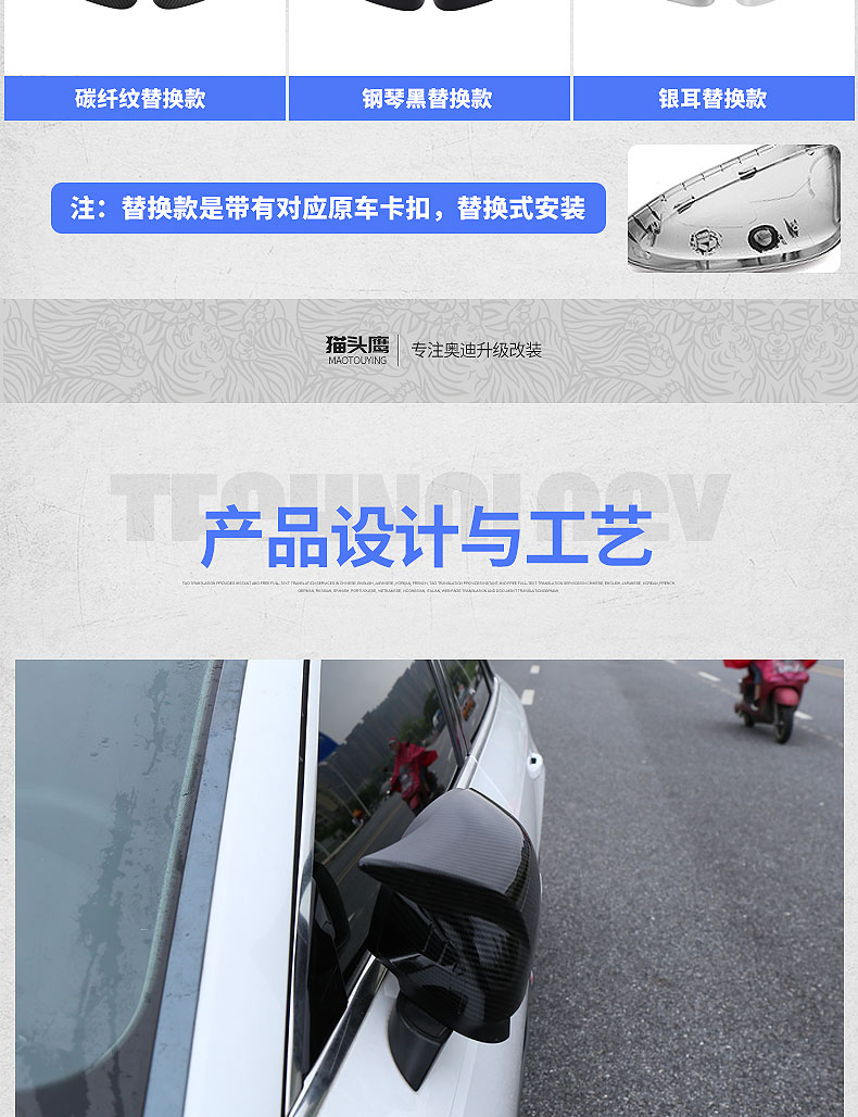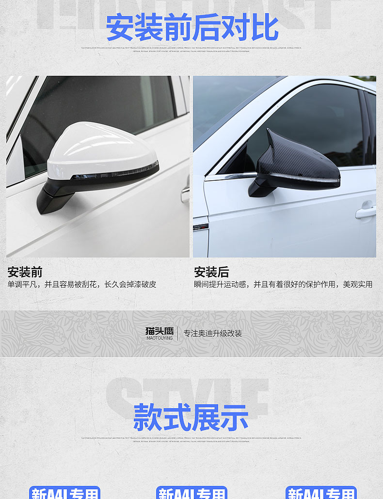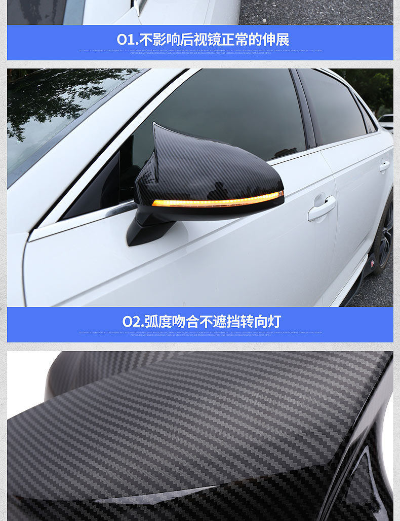 【14-19款A3/S3】银耳一对--原车替换款,【14-19款A3/S3】钢琴黑一对--原车替换款,【14-19款A3/S3】碳纤纹一对--原车替换款,【17-19款A4L/S4/A5】银耳一对--原车替换款,【17-19款A4L/S4/A5】钢琴黑一对--原车替换款,【17-19款A4L/S4/A5】碳纤纹一对--原车替换款,【17-19款A4L/S4/A5】朱鹭白一对--牛角黏贴款,【17-19款A4L/S4/A5】钢琴黑一对--牛角黏贴款,【17-19款A4L/S4/A5】碳纤纹一对--牛角黏贴款,【17-19款A4L/S4/A5】银耳一对--原车黏贴款,【17-19款A4L/S4/A5】钢琴黑一对--原车黏贴款,【17-19款A4L/S4/A5】碳纤纹一对--原车黏贴款