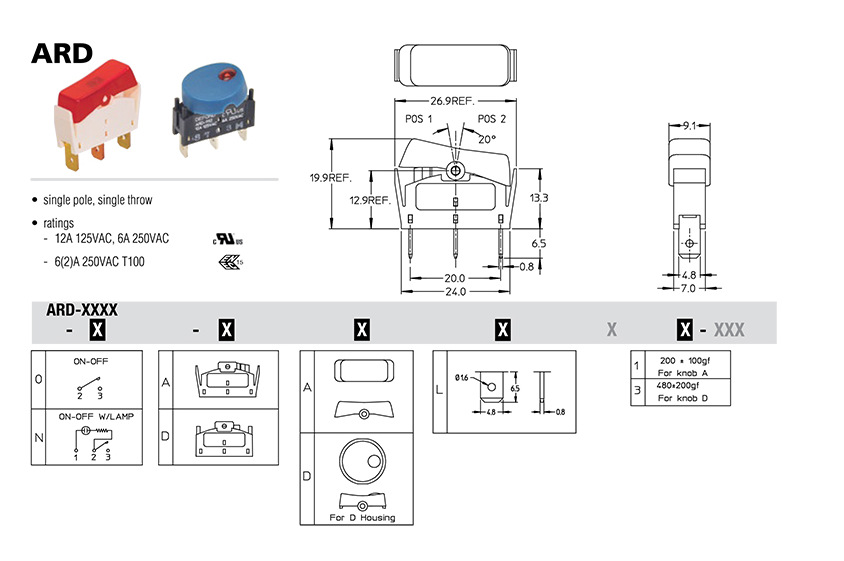 供应德丰Defond 摇臂开关 电路开关 常开常闭 ARD