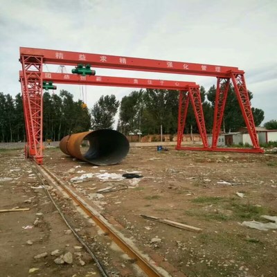门式起重机是桥式起重机的一种变形,又叫龙门吊。主要用于室外的货场、料场货、散货的装卸作业。它的金属结构像门形框架,承载主梁下安装两条支脚,可以直接在地面的轨道上行走,主梁两端可以具有外伸悬臂梁。门式起重机具有场地利用率高、作业范围大、适应面广、通用性强等特点,在港口货场得到广泛使用。