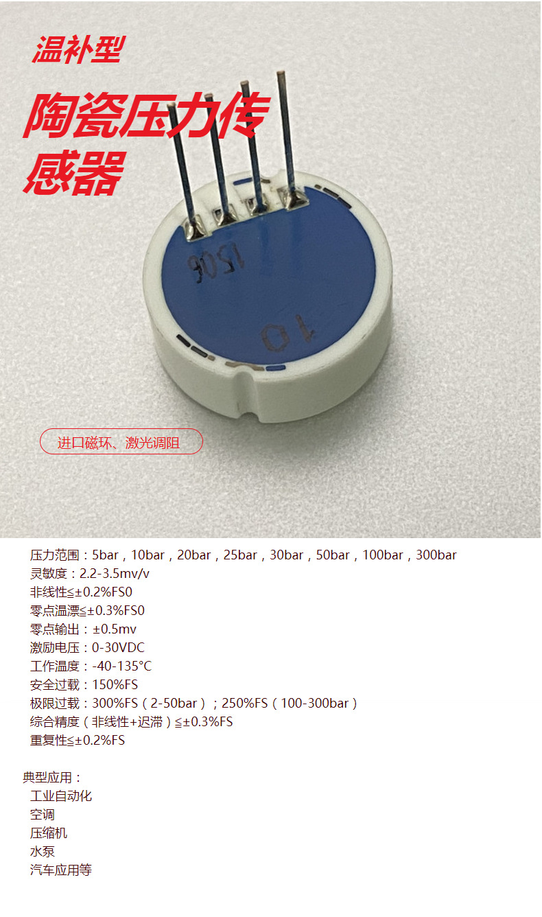 立即发布求购意向本网页所展示的有关【现货供应水压油压气压温补型 陶瓷压力传感器10/30/50/100/300Bar_压力/称重/力(敏)传感器_无锡市风标科技有限公司】的信息/图片/参数等由全球零部件网的会员【无锡市风标科技有限公司】提供,由全球零部件网会员【无锡市风标科技有限公司】自行对信息/图片/参数等的真实性、准确性和合法性负责,本平台(本网站)仅提供展示服务,请谨慎交易,因交易而产生的法律关系及法律纠纷由您自行协商解决,本平台(本网站)对此不承担任何责任。您在本网页可以浏览【现货供应水压油压气压温补型 陶瓷压力传感器10/30/50/100/300Bar_压力/称重/力(敏)传感器_无锡市风标科技有限公司】有关的信息/图片/价格等及提供【现货供应水压油压气压温补型 陶瓷压力传感器10/30/50/100/300Bar_压力/称重/力(敏)传感器_无锡市风标科技有限公司】的商家公司简介、联系方式等信息。