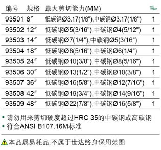 | 柄部材质 | 剪切直径 | 钳头材质 | |||