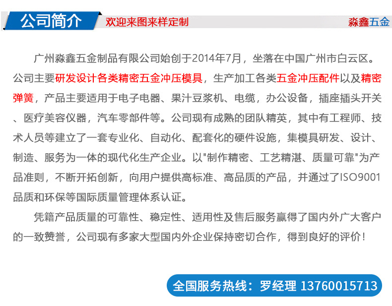 本网页所展示的有关【304不锈钢五金冲压件316不锈钢钣金定做固定安装板拉伸件定制厂家_冲压件_广州淼鑫五金制品有限公司】的信息/图片/参数等由全球零部件网的会员【广州淼鑫五金制品有限公司】提供,由全球零部件网会员【广州淼鑫五金制品有限公司】自行对信息/图片/参数等的真实性、准确性和合法性负责,本平台(本网站)仅提供展示服务,请谨慎交易,因交易而产生的法律关系及法律纠纷由您自行协商解决,本平台(本网站)对此不承担任何责任。您在本网页可以浏览【304不锈钢五金冲压件316不锈钢钣金定做固定安装板拉伸件定制厂家_冲压件_广州淼鑫五金制品有限公司】有关的信息/图片/价格等及提供【304不锈钢五金冲压件316不锈钢钣金定做固定安装板拉伸件定制厂家_冲压件_广州淼鑫五金制品有限公司】的商家公司简介、联系方式等信息。