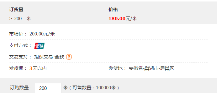 产品价格¥180.00元/米