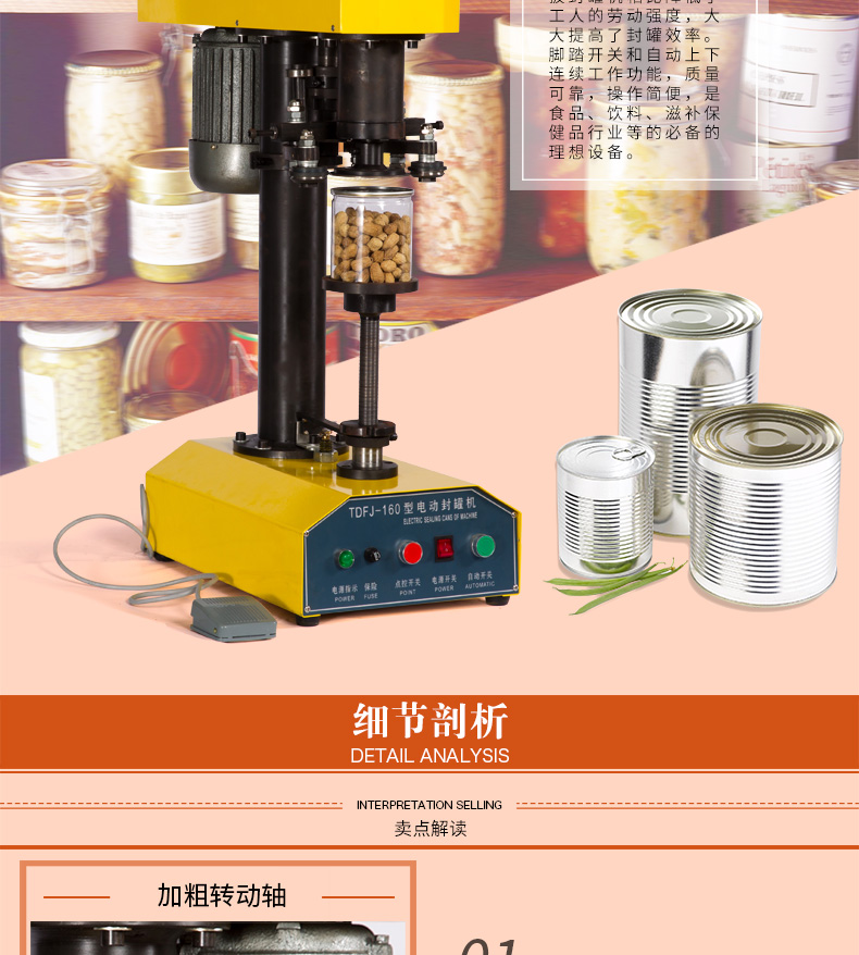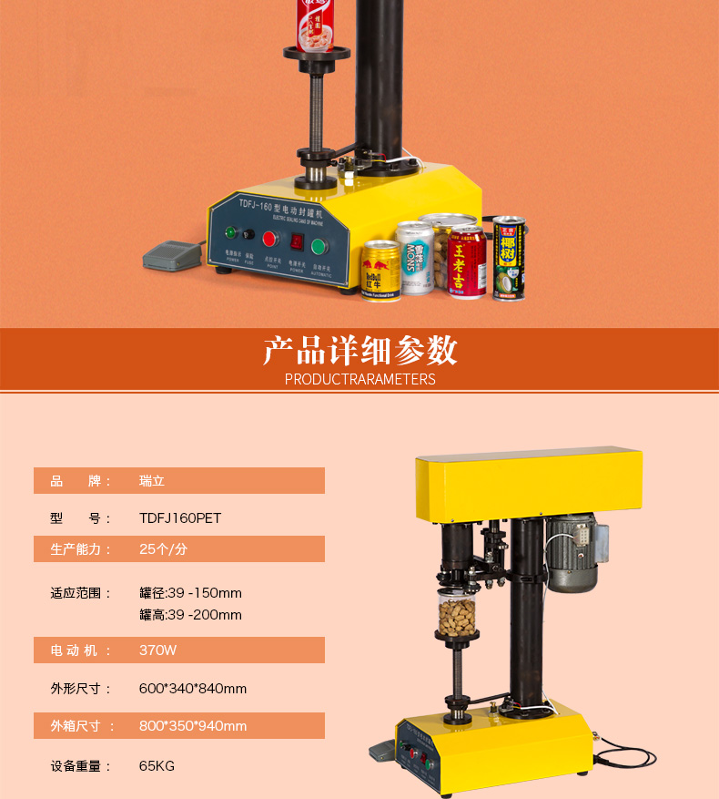 本网页所展示的有关【TDFJ-160电动封罐机马口铁封口机易拉罐封口机易拉罐封盖机塑料罐_封杯机_温州市瑞利包装机械有限公司】的信息/图片/参数等由全球零部件网的会员【温州市瑞利包装机械有限公司】提供,由全球零部件网会员【温州市瑞利包装机械有限公司】自行对信息/图片/参数等的真实性、准确性和合法性负责,本平台(本网站)仅提供展示服务,请谨慎交易,因交易而产生的法律关系及法律纠纷由您自行协商解决,本平台(本网站)对此不承担任何责任。您在本网页可以浏览【TDFJ-160电动封罐机马口铁封口机易拉罐封口机易拉罐封盖机塑料罐_封杯机_温州市瑞利包装机械有限公司】有关的信息/图片/价格等及提供【TDFJ-160电动封罐机马口铁封口机易拉罐封口机易拉罐封盖机塑料罐_封杯机_温州市瑞利包装机械有限公司】的商家公司简介、联系方式等信息。