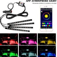 产品名称:手机APP蓝牙控制氛围灯带开关5050 12led一拖四氛围灯脚底灯车内气氛灯