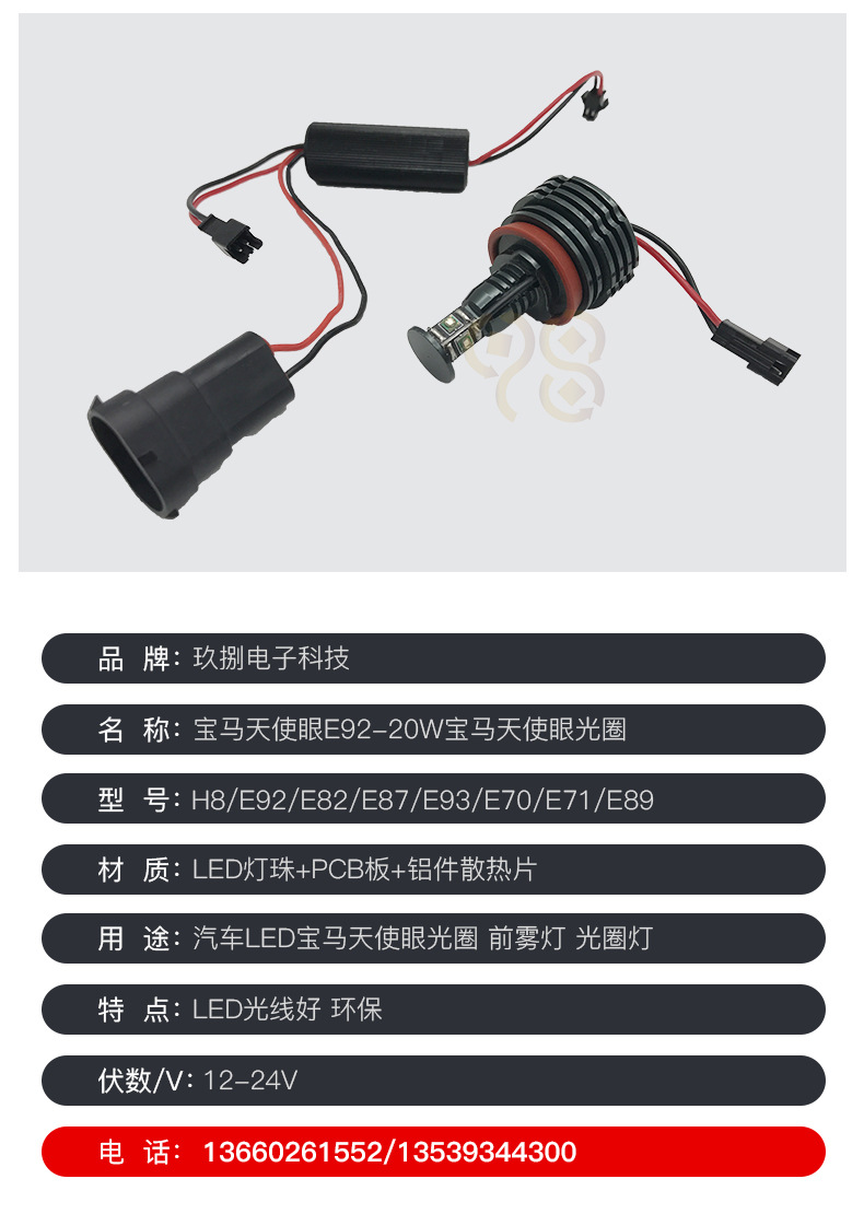 本网页所展示的有关【E92-20W 4CREE.汽车LED天使眼E92E93.E70.H8 天使眼灯_汽车灯具_佛山市玖捌电子科技有限公司】的信息/图片/参数等由全球零部件网的会员【佛山市玖捌电子科技有限公司】提供,由全球零部件网会员【佛山市玖捌电子科技有限公司】自行对信息/图片/参数等的真实性、准确性和合法性负责,本平台(本网站)仅提供展示服务,请谨慎交易,因交易而产生的法律关系及法律纠纷由您自行协商解决,本平台(本网站)对此不承担任何责任。您在本网页可以浏览【E92-20W 4CREE.汽车LED天使眼E92E93.E70.H8 天使眼灯_汽车灯具_佛山市玖捌电子科技有限公司】有关的信息/图片/价格等及提供【E92-20W 4CREE.汽车LED天使眼E92E93.E70.H8 天使眼灯_汽车灯具_佛山市玖捌电子科技有限公司】的商家公司简介、联系方式等信息。