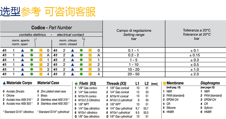 产品型号:各型号各量程基本都有现货, 常开/常闭价格一样