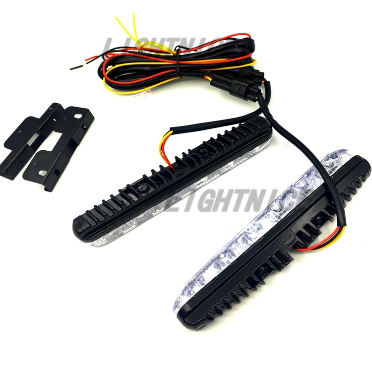 汽车中网灯双色LED日行灯6灯9灯带流光转向灯一拖二行车车灯