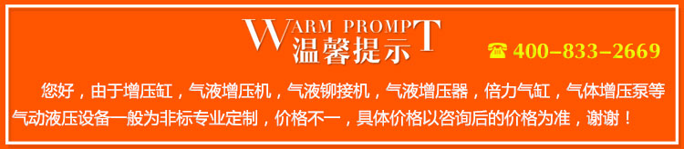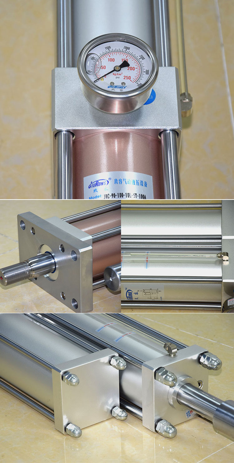 气液增压缸可用于冲孔,裁断,装配,型材碰焊,铆压铆合,铆接锻压,折弯型材,挤压成型,压平校直,压印标记,塑料熔接,修毛边等;在电声设备,烫金机械,高周波机械,热压成型机械,低压注胶设备,锂电池设备,工程设备,电子产品,吹瓶机械,纸杯设备,印刷机械,塑料机械,橡胶机械,压力机械,冶金机械,轴承机械,塑胶机械,服装机械,铆接机械,鞋机机械,制袋机械,制药机械,非标自动化设备等等行业中得到广泛应用。