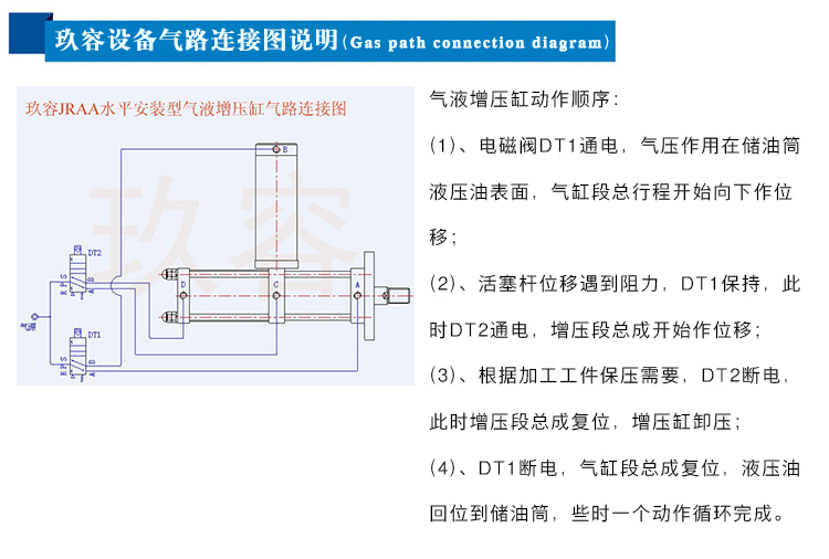 JRAA水平安装型气液增压缸又称卧式气液增压缸,安装方式为水平安装,保留了标准型增压缸的特点,一般应用于有横向出力要求的场合。