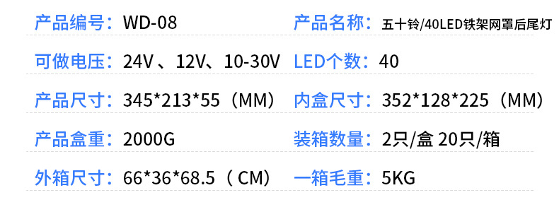 本网页所展示的有关【LED尾灯 五十铃/40LED铁架刹车灯 网罩货车后尾灯塑料转向灯WD-08_汽车灯具_常州市恒科汽配有限公司】的信息/图片/参数等由全球零部件网的会员【常州市恒科汽配有限公司】提供,由全球零部件网会员【常州市恒科汽配有限公司】自行对信息/图片/参数等的真实性、准确性和合法性负责,本平台(本网站)仅提供展示服务,请谨慎交易,因交易而产生的法律关系及法律纠纷由您自行协商解决,本平台(本网站)对此不承担任何责任。您在本网页可以浏览【LED尾灯 五十铃/40LED铁架刹车灯 网罩货车后尾灯塑料转向灯WD-08_汽车灯具_常州市恒科汽配有限公司】有关的信息/图片/价格等及提供【LED尾灯 五十铃/40LED铁架刹车灯 网罩货车后尾灯塑料转向灯WD-08_汽车灯具_常州市恒科汽配有限公司】的商家公司简介、联系方式等信息。