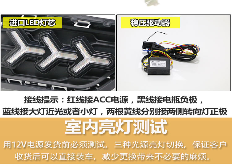【安装提示】: 需要拆杠安装,将前杠两边黑框直接替换下来,将日行灯按照原车位卡扣直接固定安装,适用于中低配车型,框上不带雷达孔的。如有疑问直接联系在线客服。