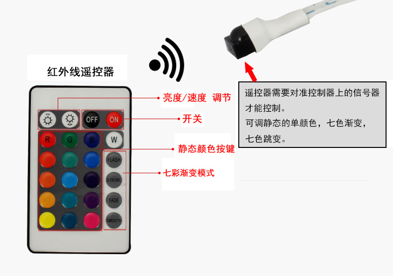安装:将四个灯分别用双面胶固定,把线藏在脚垫下,将点烟器插头插入车上点烟器接口,按下开关即可,操作非常简单,遥控器是红外线遥控,需要对准接收线头遥控才有效