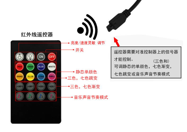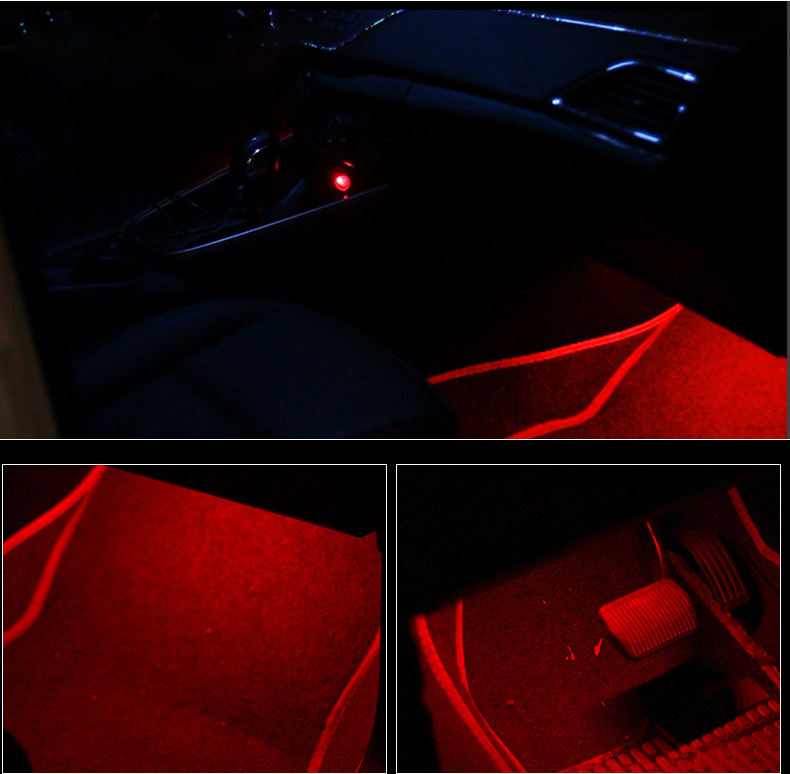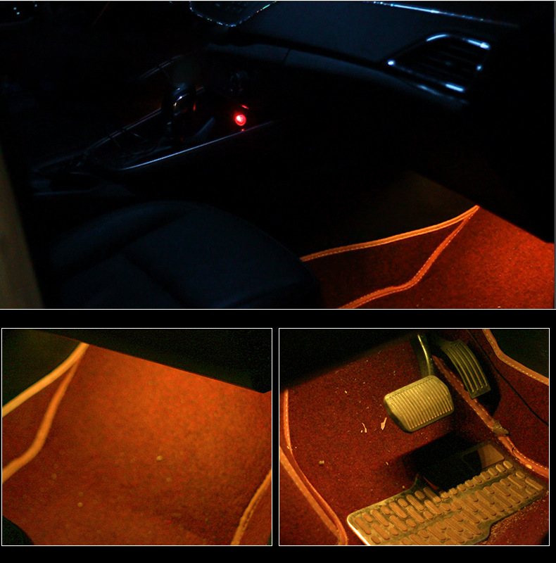 安装:将四个灯分别用双面胶固定,把线藏在脚垫下,将点烟器插头插入车上点烟器接口,按下开关即可,操作非常简单,遥控器是红外线遥控,需要对准接收线头遥控才有效