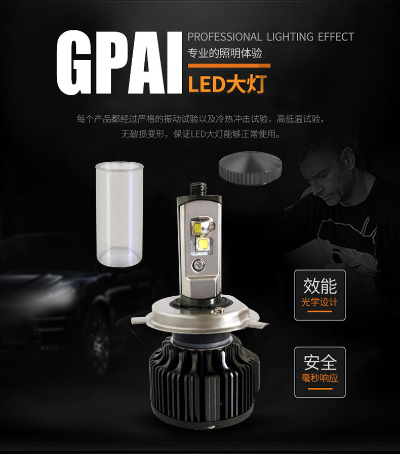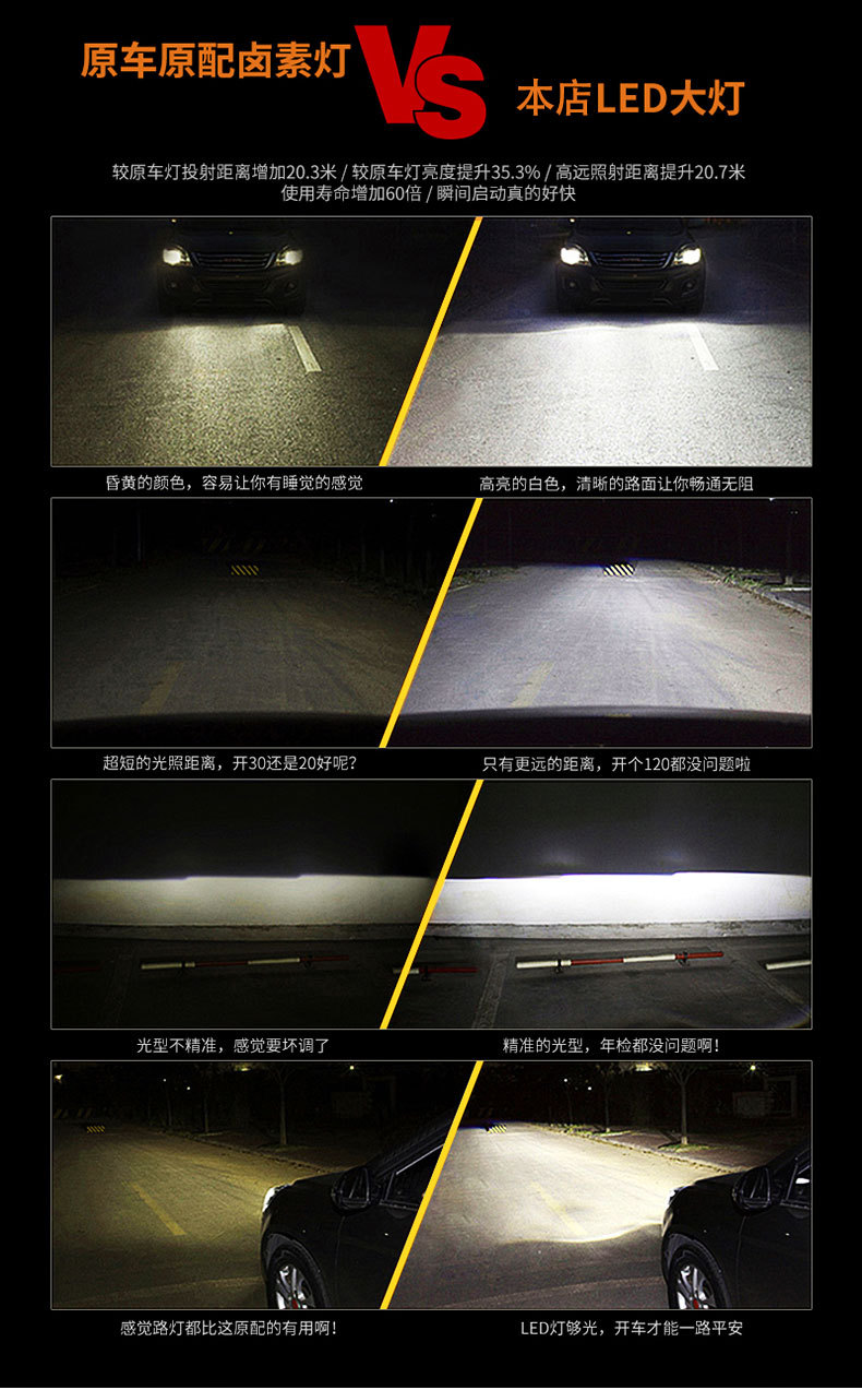 1;四面发光,,真正的40w,亮度真正达到4800流明,目前市面最亮LED前大灯。