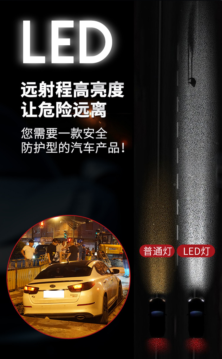 3、采用LED光源,节能耗电小,能更好的保护汽车电路;