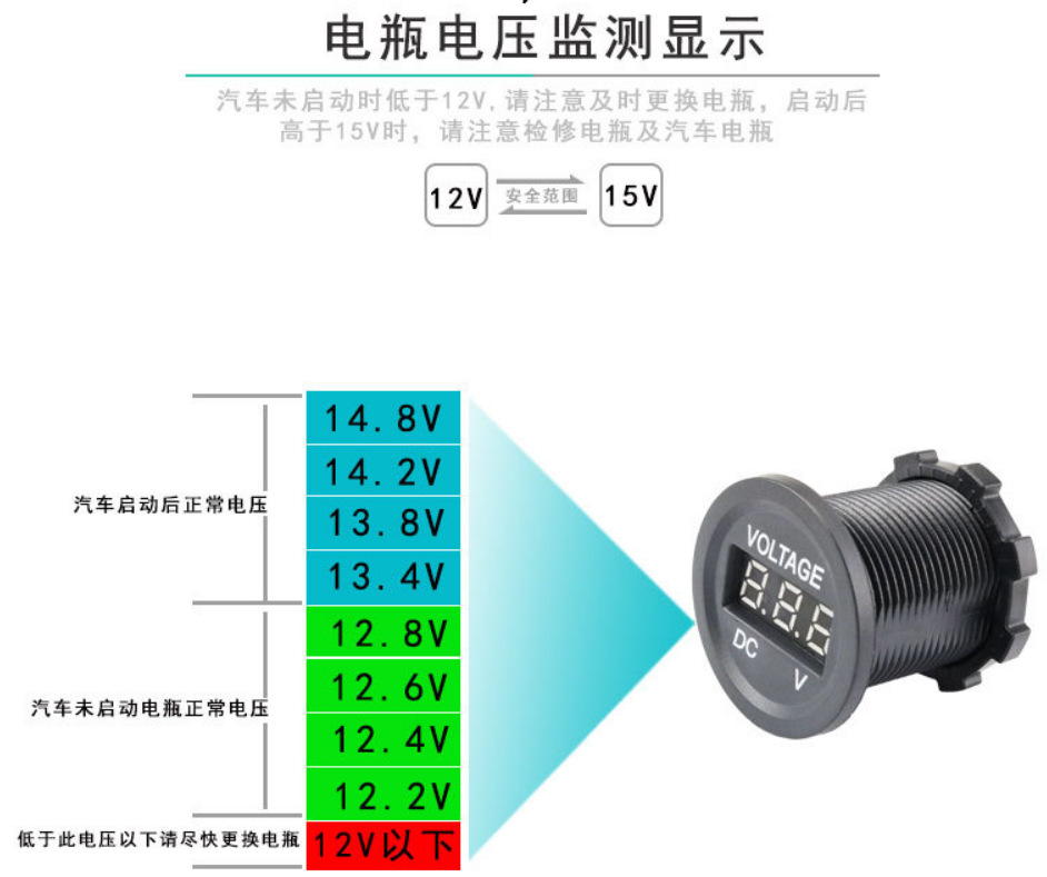 产品名称:改装车载数显电压表船舶改装电瓶电压表