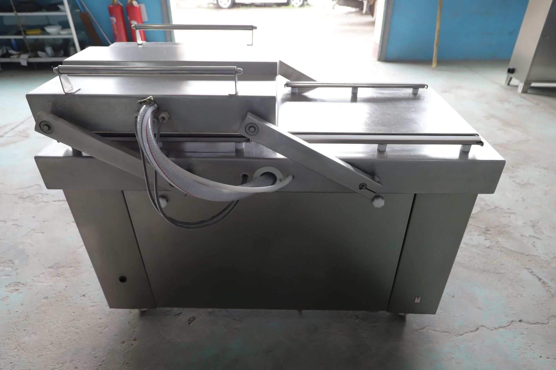 真空泵开始抽气,机盖即被自动吸住,抽真空时间可根据包装要求调节真空度高低,调节时,时间由低至高,即真空度更底。