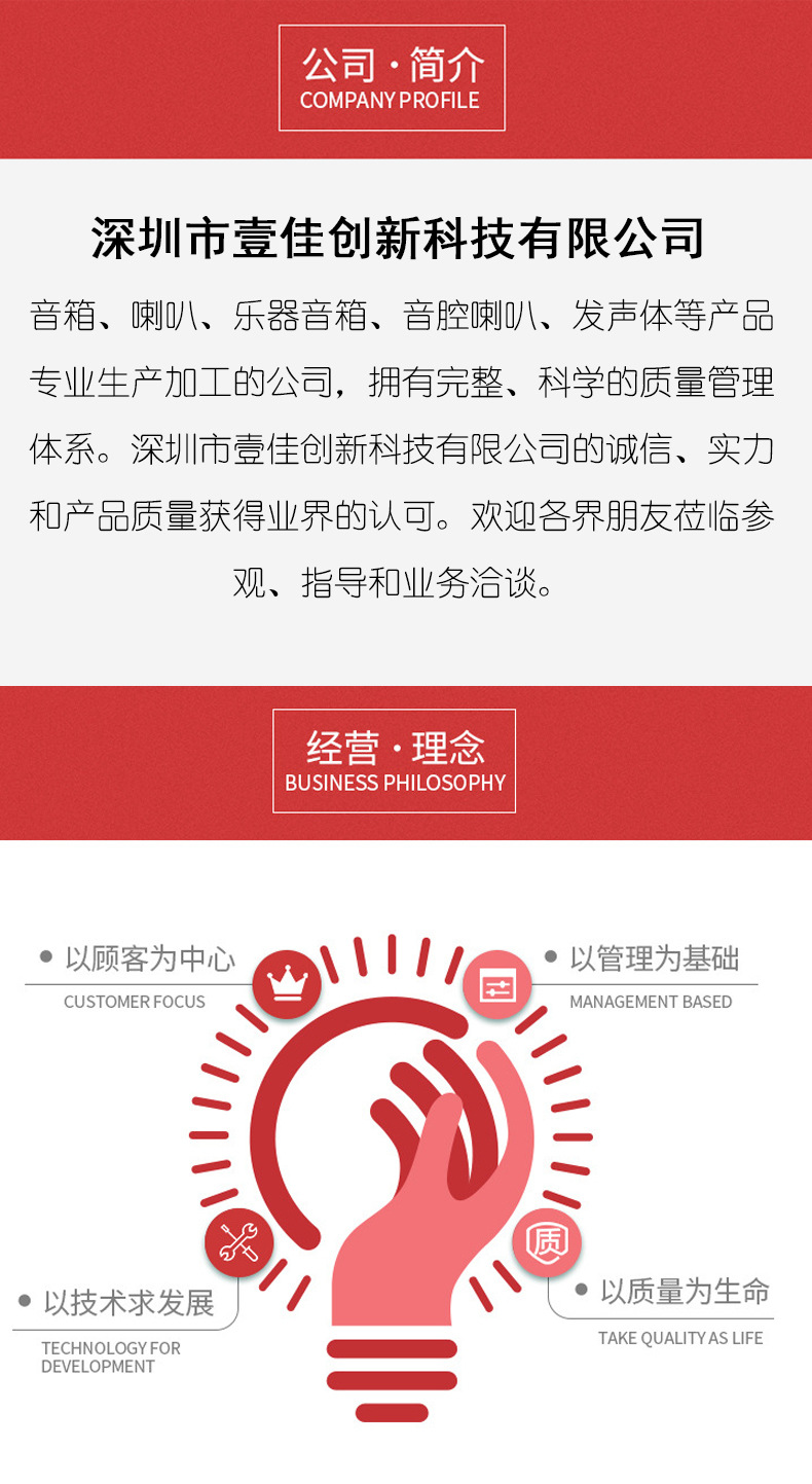 本网页所展示的有关【腔体喇叭4欧3W家用电器全音域音腔喇叭带电线改装扬声器蓝牙音箱_喇叭及配件_深圳市壹佳创新科技有限公司】的信息/图片/参数等由全球零部件网的会员【深圳市壹佳创新科技有限公司】提供,由全球零部件网会员【深圳市壹佳创新科技有限公司】自行对信息/图片/参数等的真实性、准确性和合法性负责,本平台(本网站)仅提供展示服务,请谨慎交易,因交易而产生的法律关系及法律纠纷由您自行协商解决,本平台(本网站)对此不承担任何责任。您在本网页可以浏览【腔体喇叭4欧3W家用电器全音域音腔喇叭带电线改装扬声器蓝牙音箱_喇叭及配件_深圳市壹佳创新科技有限公司】有关的信息/图片/价格等及提供【腔体喇叭4欧3W家用电器全音域音腔喇叭带电线改装扬声器蓝牙音箱_喇叭及配件_深圳市壹佳创新科技有限公司】的商家公司简介、联系方式等信息。