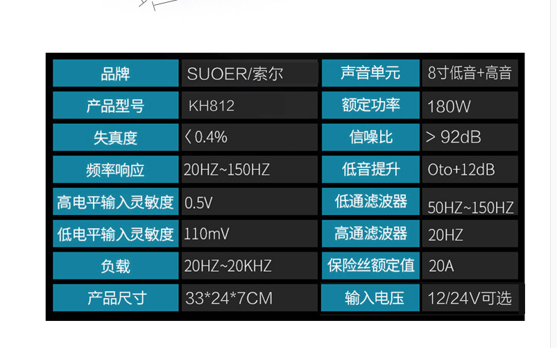 本网页所展示的有关【索尔车载12v/24V带高音超薄毛绒低音炮_汽车影音娱乐_广州市索尔汽车用品有限公司】的信息/图片/参数等由全球零部件网的会员【广州市索尔汽车用品有限公司】提供,由全球零部件网会员【广州市索尔汽车用品有限公司】自行对信息/图片/参数等的真实性、准确性和合法性负责,本平台(本网站)仅提供展示服务,请谨慎交易,因交易而产生的法律关系及法律纠纷由您自行协商解决,本平台(本网站)对此不承担任何责任。您在本网页可以浏览【索尔车载12v/24V带高音超薄毛绒低音炮_汽车影音娱乐_广州市索尔汽车用品有限公司】有关的信息/图片/价格等及提供【索尔车载12v/24V带高音超薄毛绒低音炮_汽车影音娱乐_广州市索尔汽车用品有限公司】的商家公司简介、联系方式等信息。