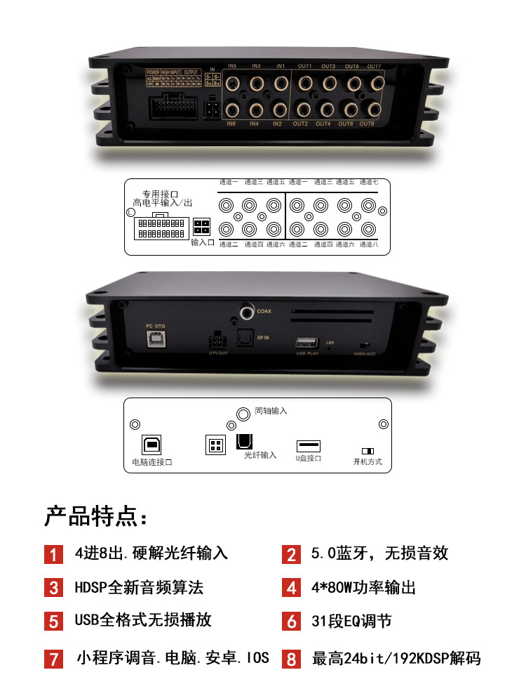 本网页所展示的有关【DSP源头工厂车载音频处理器 大功率 4进8出 6路高电平DSP汽车功放_喇叭及配件_佛山市音特尔电子科技有限公司】的信息/图片/参数等由全球零部件网的会员【佛山市音特尔电子科技有限公司】提供,由全球零部件网会员【佛山市音特尔电子科技有限公司】自行对信息/图片/参数等的真实性、准确性和合法性负责,本平台(本网站)仅提供展示服务,请谨慎交易,因交易而产生的法律关系及法律纠纷由您自行协商解决,本平台(本网站)对此不承担任何责任。您在本网页可以浏览【DSP源头工厂车载音频处理器 大功率 4进8出 6路高电平DSP汽车功放_喇叭及配件_佛山市音特尔电子科技有限公司】有关的信息/图片/价格等及提供【DSP源头工厂车载音频处理器 大功率 4进8出 6路高电平DSP汽车功放_喇叭及配件_佛山市音特尔电子科技有限公司】的商家公司简介、联系方式等信息。