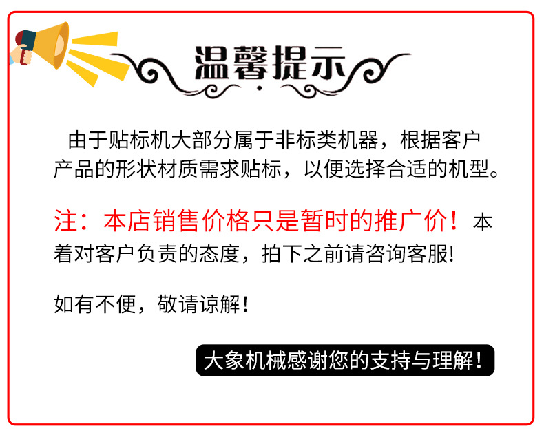 本网页所展示的有关【东莞全自动贴标机定位圆瓶贴标机试管红酒西林瓶药瓶双面贴标签机_贴体包装机_东莞市大象机械设备有限公司】的信息/图片/参数等由全球零部件网的会员【东莞市大象机械设备有限公司】提供,由全球零部件网会员【东莞市大象机械设备有限公司】自行对信息/图片/参数等的真实性、准确性和合法性负责,本平台(本网站)仅提供展示服务,请谨慎交易,因交易而产生的法律关系及法律纠纷由您自行协商解决,本平台(本网站)对此不承担任何责任。您在本网页可以浏览【东莞全自动贴标机定位圆瓶贴标机试管红酒西林瓶药瓶双面贴标签机_贴体包装机_东莞市大象机械设备有限公司】有关的信息/图片/价格等及提供【东莞全自动贴标机定位圆瓶贴标机试管红酒西林瓶药瓶双面贴标签机_贴体包装机_东莞市大象机械设备有限公司】的商家公司简介、联系方式等信息。