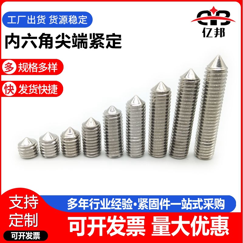 304不锈钢内六角尖端紧定螺钉 机米 顶丝 无头螺丝 M3-M16规格