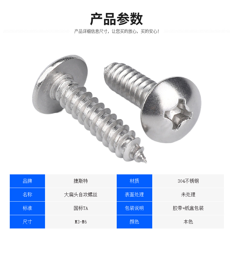 本网页所展示的有关【M3-M6蘑菇头TA半圆伞头十字槽螺钉304/316不锈钢大扁头自攻螺丝_螺丝_深圳市特任性五金有限公司】的信息/图片/参数等由全球零部件网的会员【深圳市特任性五金有限公司】提供,由全球零部件网会员【深圳市特任性五金有限公司】自行对信息/图片/参数等的真实性、准确性和合法性负责,本平台(本网站)仅提供展示服务,请谨慎交易,因交易而产生的法律关系及法律纠纷由您自行协商解决,本平台(本网站)对此不承担任何责任。您在本网页可以浏览【M3-M6蘑菇头TA半圆伞头十字槽螺钉304/316不锈钢大扁头自攻螺丝_螺丝_深圳市特任性五金有限公司】有关的信息/图片/价格等及提供【M3-M6蘑菇头TA半圆伞头十字槽螺钉304/316不锈钢大扁头自攻螺丝_螺丝_深圳市特任性五金有限公司】的商家公司简介、联系方式等信息。