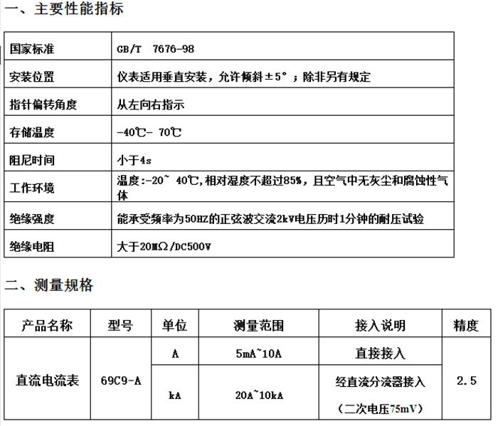 69L9型电表是用途广泛的直接作用模拟指示电测量仪表、适用于直流电路指示直流电路电流的变化情况。安装式电表的优点是可以显示被测量电量的变化趋势:主要用于工矿企业,冶金,化工、电力、成套设备及各种电控装置上。造型简洁明快、美观大方。产品性能符合GB/T7676-1998国家标准要求。
