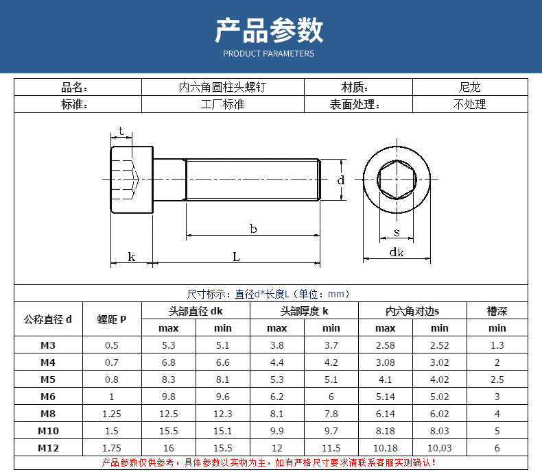 本网页所展示的有关【PA66塑料白色尼龙圆柱头内六角螺丝 手拧杯头内六角螺栓 M3-M12_螺丝_深圳亿客达五金制品有限公司】的信息/图片/参数等由全球零部件网的会员【深圳亿客达五金制品有限公司】提供,由全球零部件网会员【深圳亿客达五金制品有限公司】自行对信息/图片/参数等的真实性、准确性和合法性负责,本平台(本网站)仅提供展示服务,请谨慎交易,因交易而产生的法律关系及法律纠纷由您自行协商解决,本平台(本网站)对此不承担任何责任。您在本网页可以浏览【PA66塑料白色尼龙圆柱头内六角螺丝 手拧杯头内六角螺栓 M3-M12_螺丝_深圳亿客达五金制品有限公司】有关的信息/图片/价格等及提供【PA66塑料白色尼龙圆柱头内六角螺丝 手拧杯头内六角螺栓 M3-M12_螺丝_深圳亿客达五金制品有限公司】的商家公司简介、联系方式等信息。
