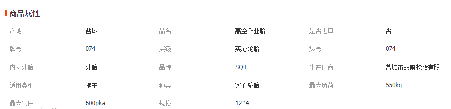 本网页所展示的有关【厂家供应销售 剪叉式升降平台轮胎 高空作业车轮12*4实心拖车轮胎_轮胎_盐城市双前轮胎有限公司】的信息/图片/参数等由全球零部件网的会员【盐城市双前轮胎有限公司】提供,由全球零部件网会员【盐城市双前轮胎有限公司】自行对信息/图片/参数等的真实性、准确性和合法性负责,本平台(本网站)仅提供展示服务,请谨慎交易,因交易而产生的法律关系及法律纠纷由您自行协商解决,本平台(本网站)对此不承担任何责任。您在本网页可以浏览【厂家供应销售 剪叉式升降平台轮胎 高空作业车轮12*4实心拖车轮胎_轮胎_盐城市双前轮胎有限公司】有关的信息/图片/价格等及提供【厂家供应销售 剪叉式升降平台轮胎 高空作业车轮12*4实心拖车轮胎_轮胎_盐城市双前轮胎有限公司】的商家公司简介、联系方式等信息。