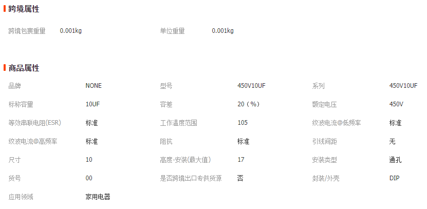 型号:450V10UF