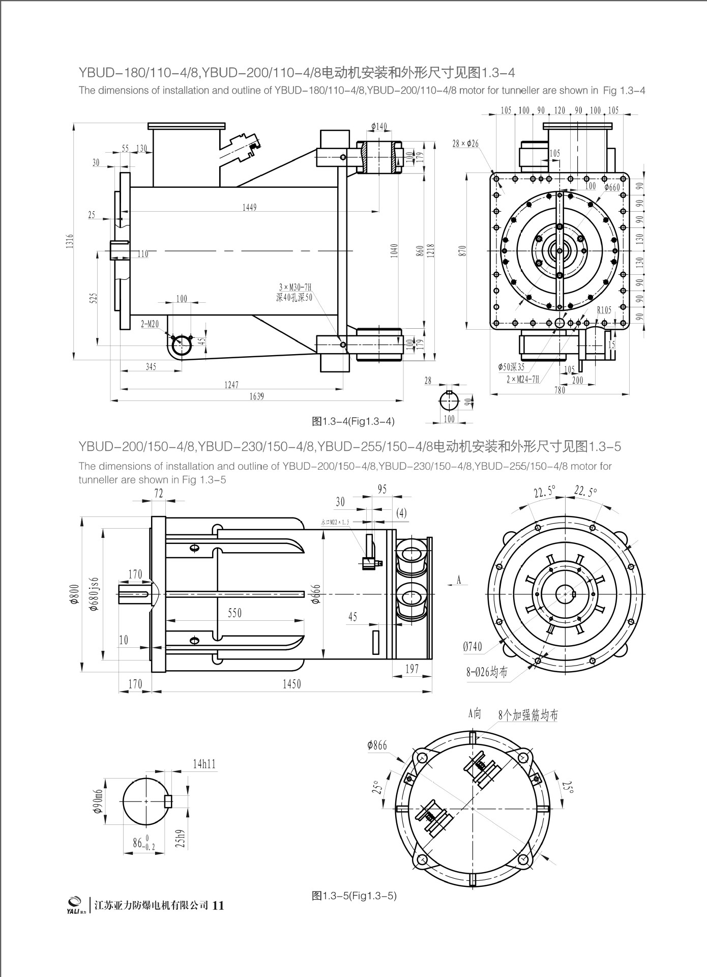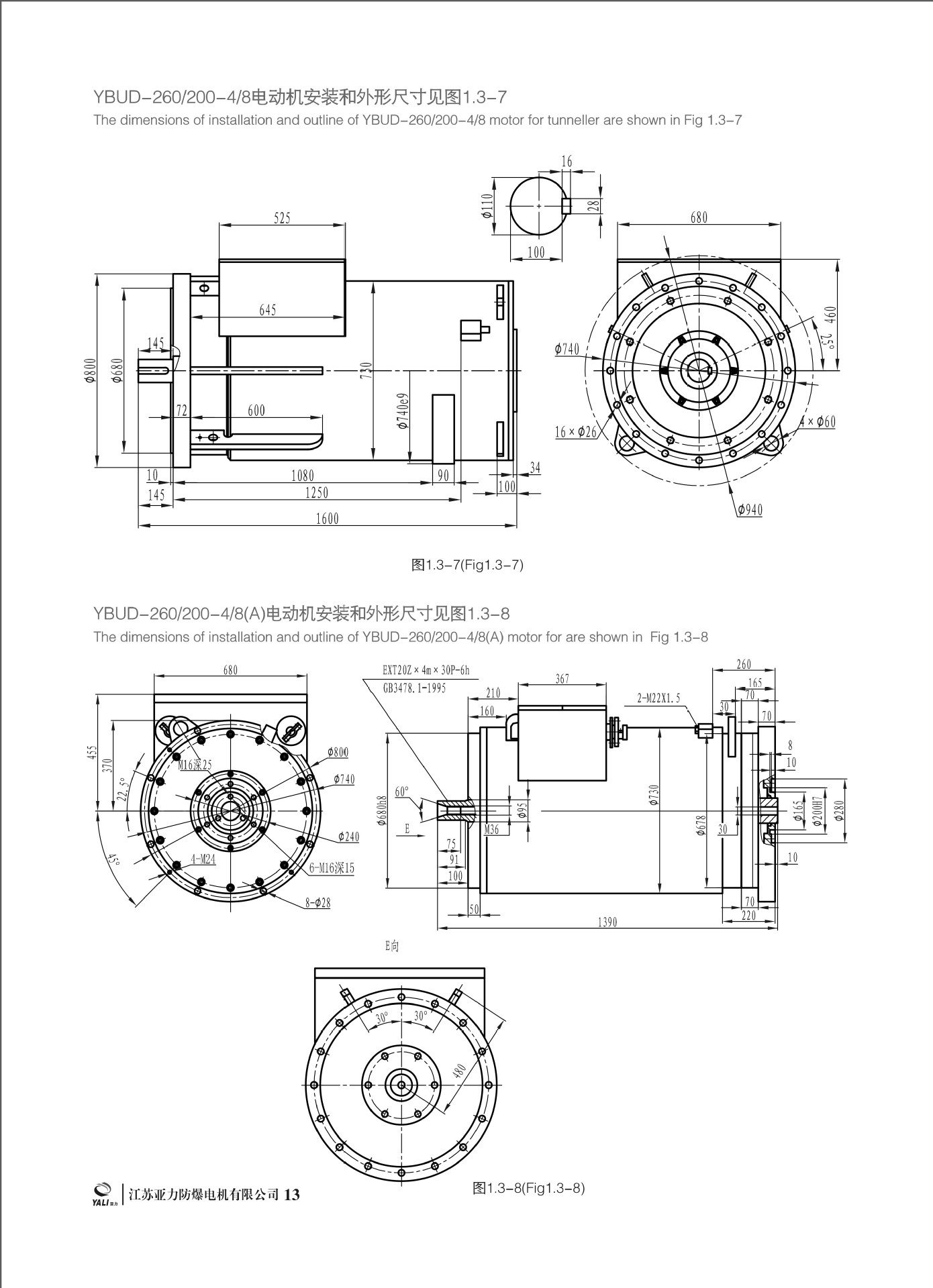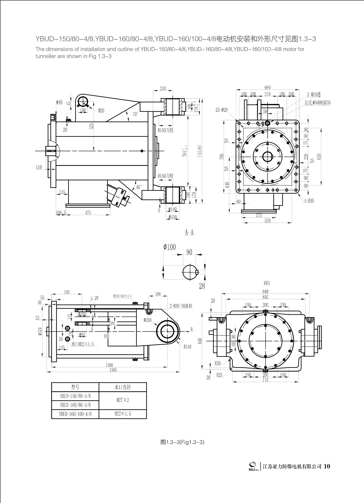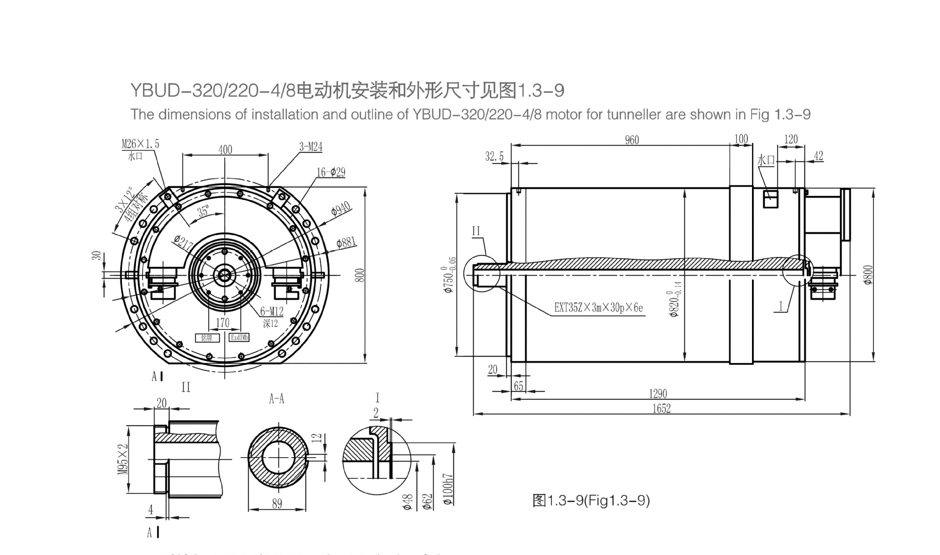 | The dimensions of installation and outline of YBUD-320/220-4/8 motor for tunneller are shown in Fig 1.3-12 |