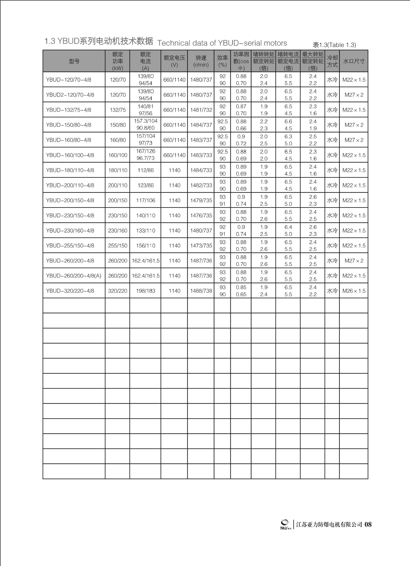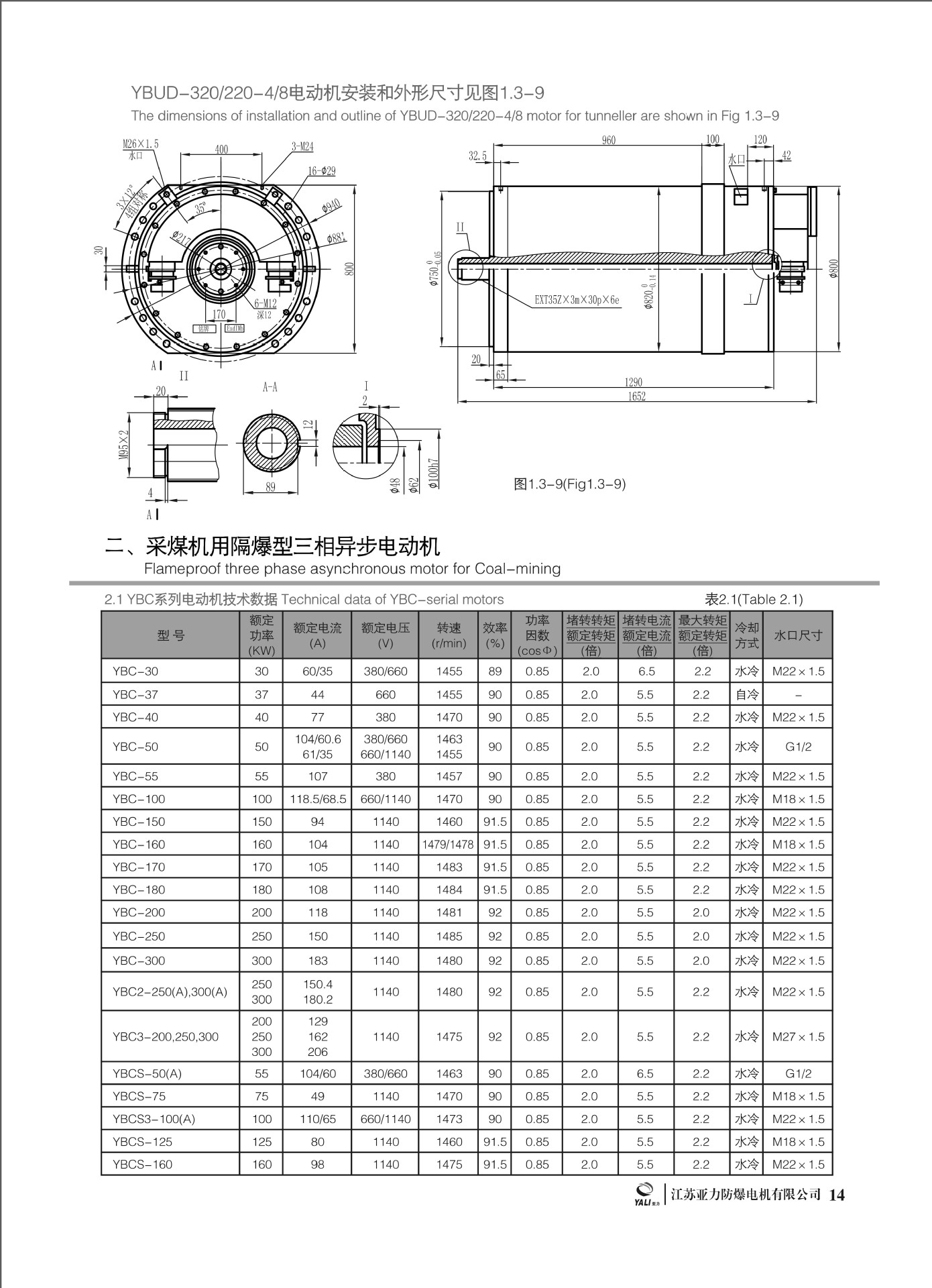 YBU,YBUS,YNUD系列掘进机用隔爆型三相异步电动机(以下简称电动机)适合于煤矿井下掘进机用隔爆型三相异步电动机,分截割电机、泵站电机、铲板电机、二运电机等。可在海拔不超过1000米,环境温度-20°C~+40°C(风冷电机)0°C~+40°C(水冷电机),相对湿度不大于95%(在温度25°C时),且含有甲烷和爆炸性气体混合物的矿井中安全