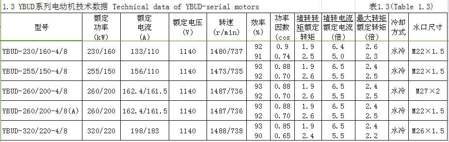 | YBUD-320/220-4/8电动机安装和外形尺寸见图1.3-12 | |||||||||||