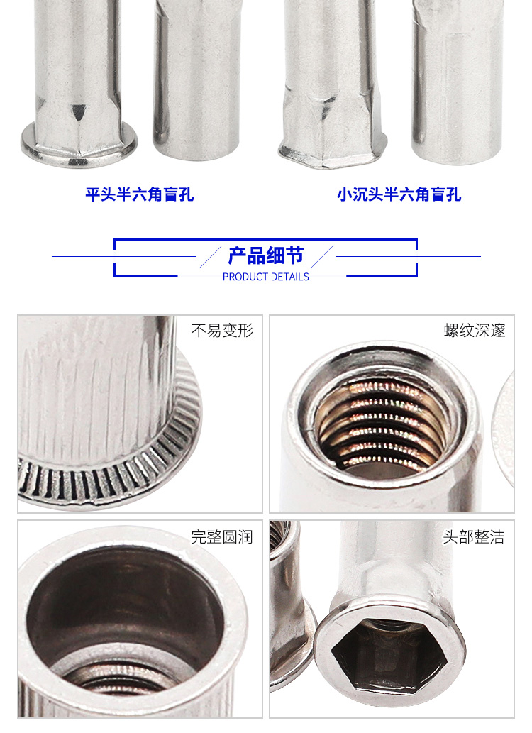 本网页所展示的有关【不锈钢304平头小沉头内外半六角条纹螺母拉铆螺母拉铆盲孔M4-M12_螺母_温州亿云标准件有限公司】的信息/图片/参数等由全球零部件网的会员【温州亿云标准件有限公司】提供,由全球零部件网会员【温州亿云标准件有限公司】自行对信息/图片/参数等的真实性、准确性和合法性负责,本平台(本网站)仅提供展示服务,请谨慎交易,因交易而产生的法律关系及法律纠纷由您自行协商解决,本平台(本网站)对此不承担任何责任。您在本网页可以浏览【不锈钢304平头小沉头内外半六角条纹螺母拉铆螺母拉铆盲孔M4-M12_螺母_温州亿云标准件有限公司】有关的信息/图片/价格等及提供【不锈钢304平头小沉头内外半六角条纹螺母拉铆螺母拉铆盲孔M4-M12_螺母_温州亿云标准件有限公司】的商家公司简介、联系方式等信息。