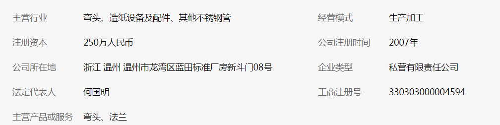 本网页所展示的有关【供应生产厂家 供应不锈钢对焊管件_管材及管接头_温州国泰管件制造有限公司】的信息/图片/参数等由全球零部件网的会员【温州国泰管件制造有限公司】提供,由全球零部件网会员【温州国泰管件制造有限公司】自行对信息/图片/参数等的真实性、准确性和合法性负责,本平台(本网站)仅提供展示服务,请谨慎交易,因交易而产生的法律关系及法律纠纷由您自行协商解决,本平台(本网站)对此不承担任何责任。您在本网页可以浏览【供应生产厂家 供应不锈钢对焊管件_管材及管接头_温州国泰管件制造有限公司】有关的信息/图片/价格等及提供【供应生产厂家 供应不锈钢对焊管件_管材及管接头_温州国泰管件制造有限公司】的商家公司简介、联系方式等信息。
