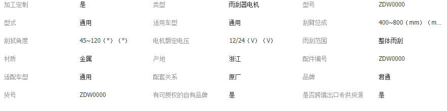 本网页所展示的有关【雨刮电机 雨刮器电机 刮水电机 雨刮系统_雨刷系统_瑞安市君通机电有限公司】的信息/图片/参数等由全球零部件网的会员【瑞安市君通机电有限公司】提供,由全球零部件网会员【瑞安市君通机电有限公司】自行对信息/图片/参数等的真实性、准确性和合法性负责,本平台(本网站)仅提供展示服务,请谨慎交易,因交易而产生的法律关系及法律纠纷由您自行协商解决,本平台(本网站)对此不承担任何责任。您在本网页可以浏览【雨刮电机 雨刮器电机 刮水电机 雨刮系统_雨刷系统_瑞安市君通机电有限公司】有关的信息/图片/价格等及提供【雨刮电机 雨刮器电机 刮水电机 雨刮系统_雨刷系统_瑞安市君通机电有限公司】的商家公司简介、联系方式等信息。