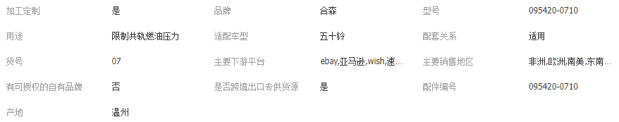 本网页所展示的有关【燃油共轨泄压阀095420-0710限压阀卸荷阀_阀门_瑞安市合森汽车配件厂】的信息/图片/参数等由全球零部件网的会员【瑞安市合森汽车配件厂】提供,由全球零部件网会员【瑞安市合森汽车配件厂】自行对信息/图片/参数等的真实性、准确性和合法性负责,本平台(本网站)仅提供展示服务,请谨慎交易,因交易而产生的法律关系及法律纠纷由您自行协商解决,本平台(本网站)对此不承担任何责任。您在本网页可以浏览【燃油共轨泄压阀095420-0710限压阀卸荷阀_阀门_瑞安市合森汽车配件厂】有关的信息/图片/价格等及提供【燃油共轨泄压阀095420-0710限压阀卸荷阀_阀门_瑞安市合森汽车配件厂】的商家公司简介、联系方式等信息。